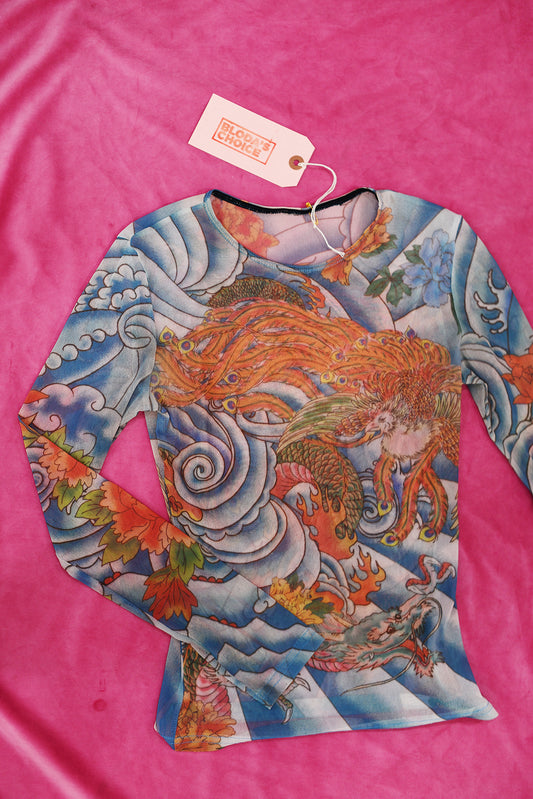 Sold outTattoo mesh top Y2K made in USA