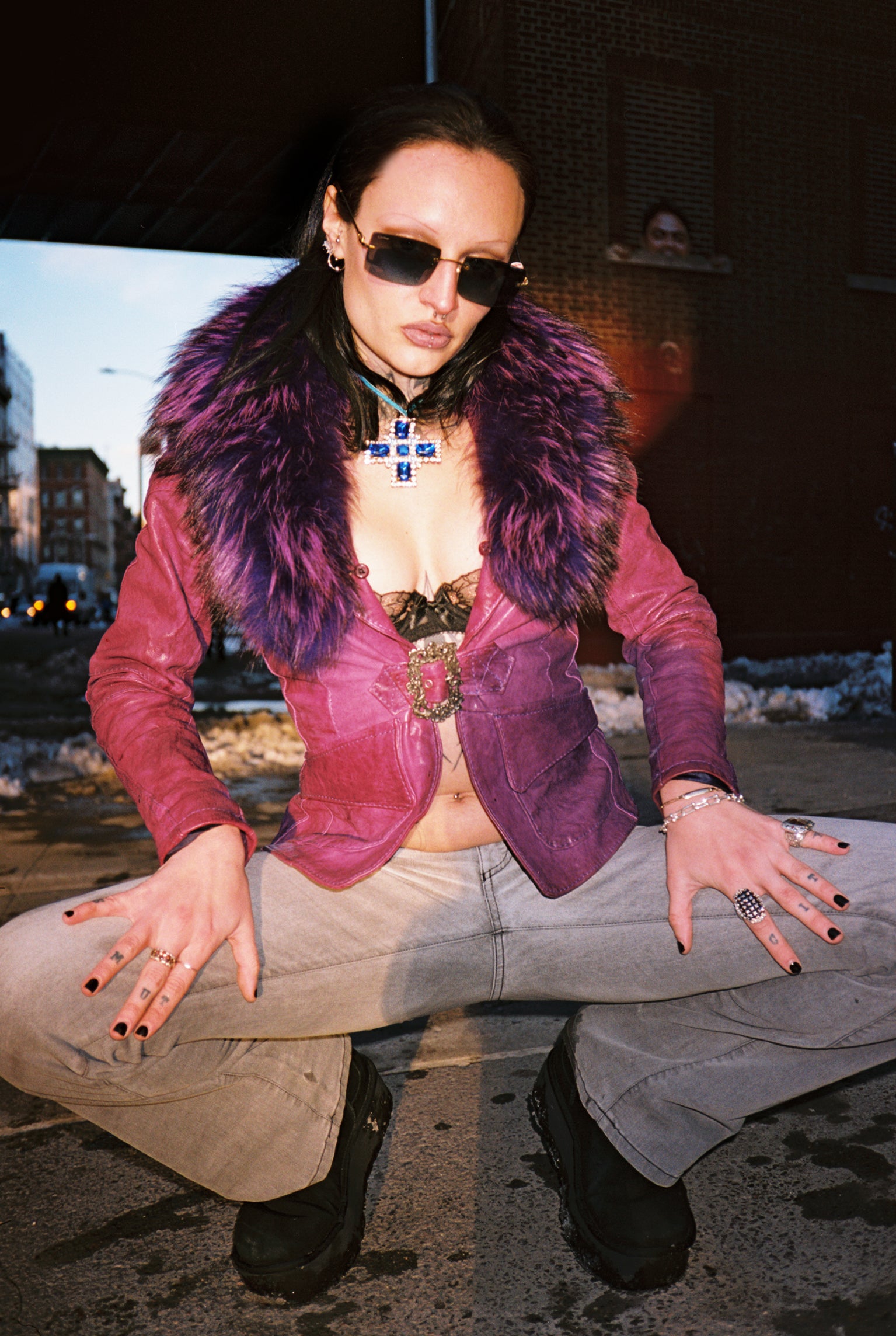 Italian leather jacket with genuine fox collar in size XS